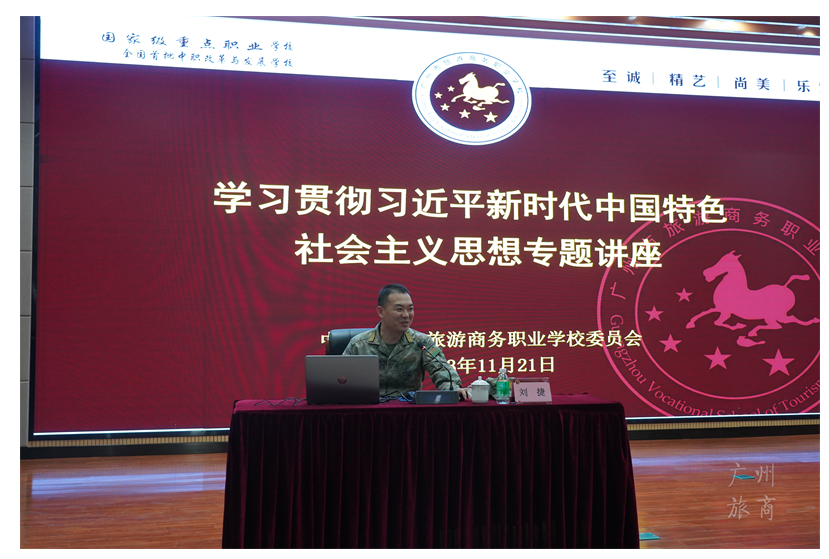 11月21日,我校在北教学楼会议室举办了学习贯彻习近平新时代中国特色社会主义思想专题讲座,特别邀请了陆军特种作战学院军政基础系副主任刘捷教授进行授课。党委书记王勇,副校长王朝晖、黄国庭、何永辉及300余名教职工参加了本次讲座。党政办副主任易倩善同志主持。