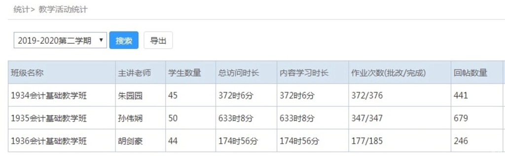 利用网络平台的限时功能,让作业提交变得更可控,有利于加强老师对学生学习进度的监督与学习效果的考核。根据网教系统后台的统计数据,老师可以及时了解学生的完成率,并作为学生平时成绩的参考指标。
