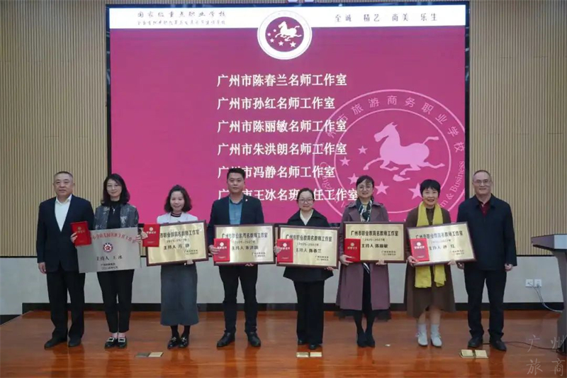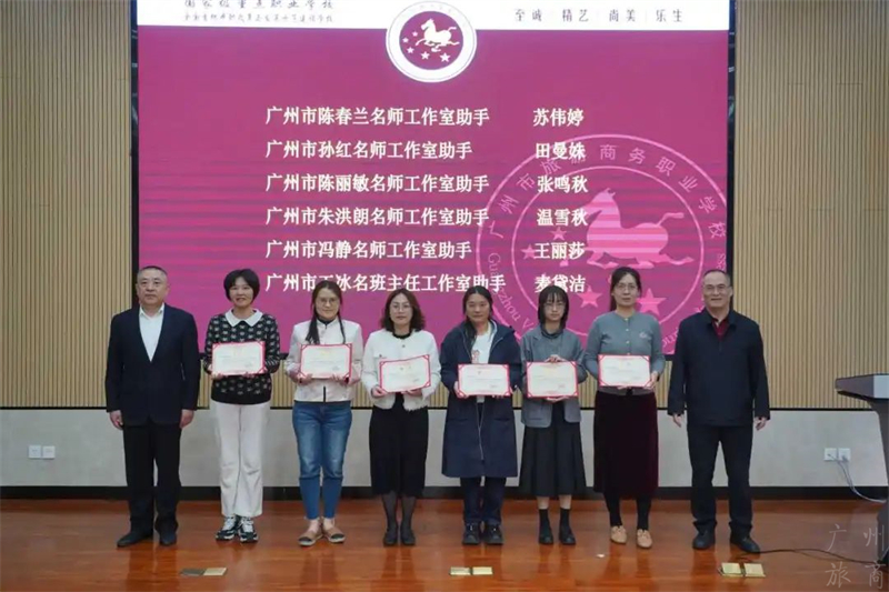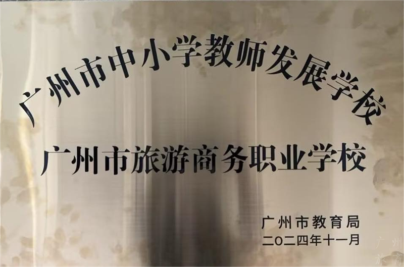 2024年11月22日,首批广州市中小学教师发展学校及广州市中小学教育专家、名校长、名教师工作室主持人(2025-2027年)授牌仪式在广雅中学举行,广州市旅游商务职业学校副校长陈春兰代表接受“广州市职业教育名师工作室”授牌,教育教学督导室副主任简杰敏代表广州旅商接受首批“广州市中小学教师发展学校”授牌。
