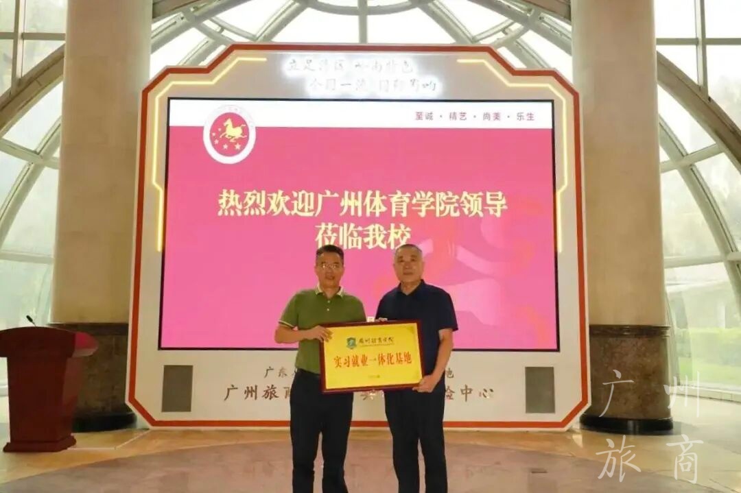 王勇书记代表学校接受广州体育学院授予的“广州体育学院实习就业一体化基地”牌匾,标志着两校在体育教育、实习实训与人才输送方面进入实质合作阶段。
