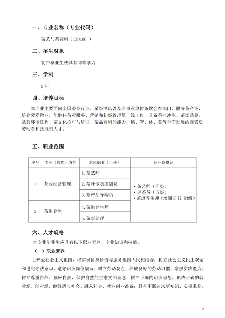 1-1-2 广州市旅游商务职业学校茶艺与茶营销专业人才培养方案