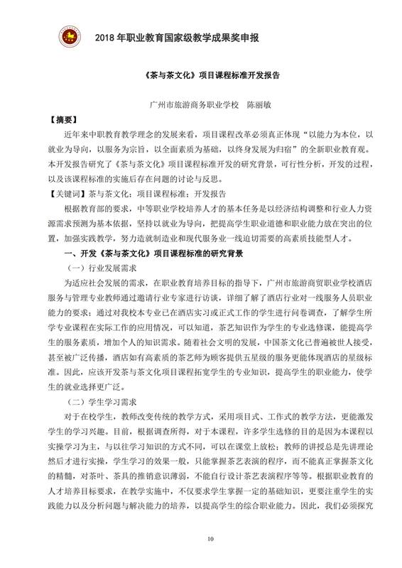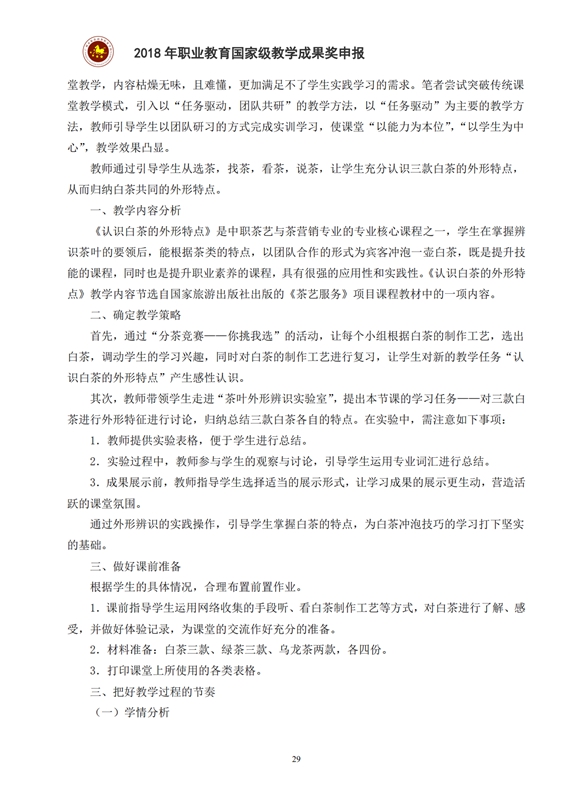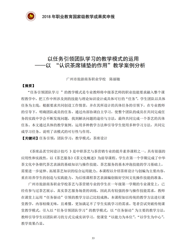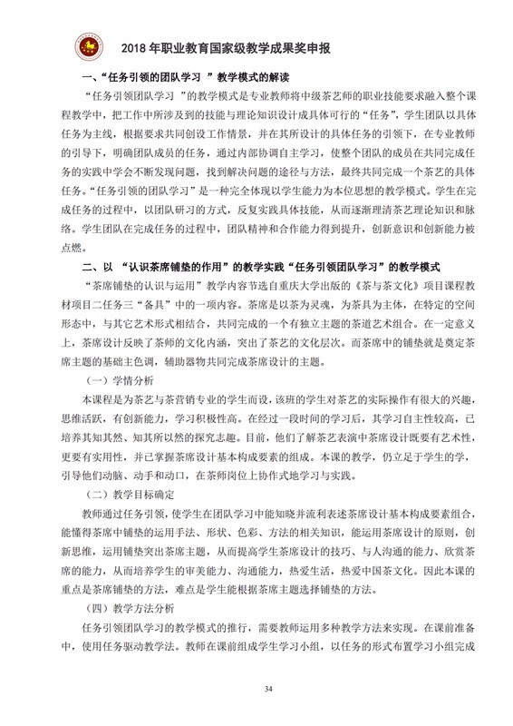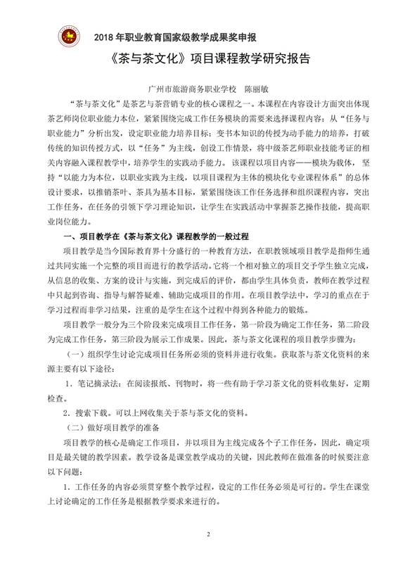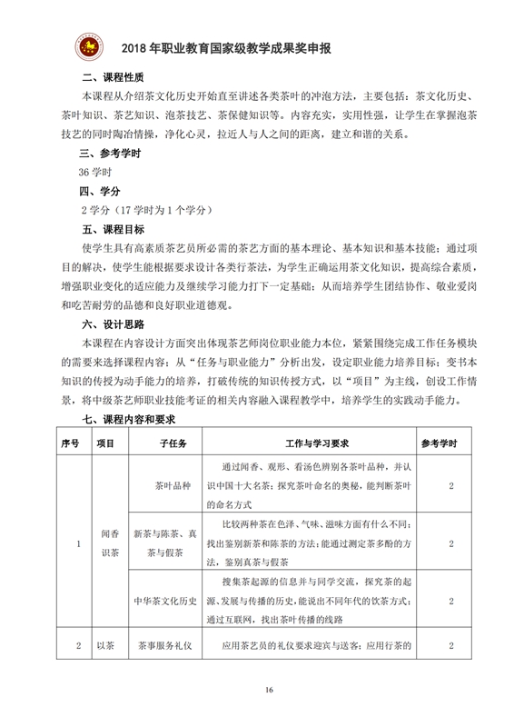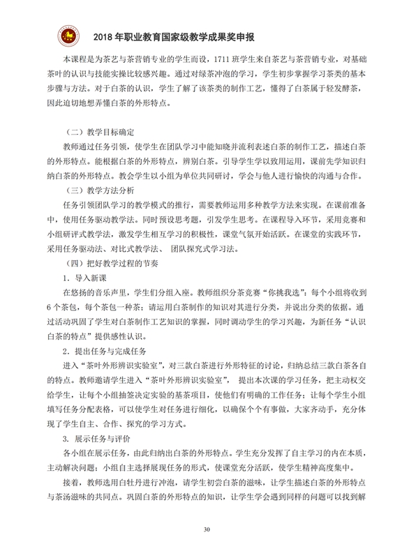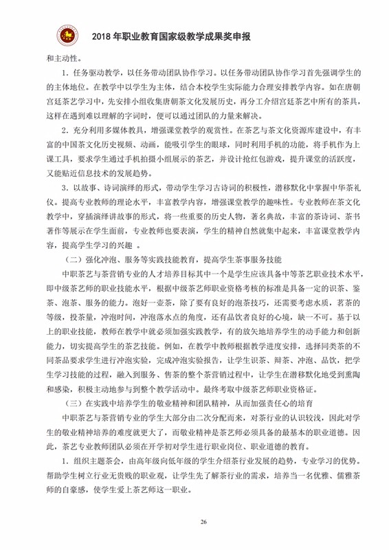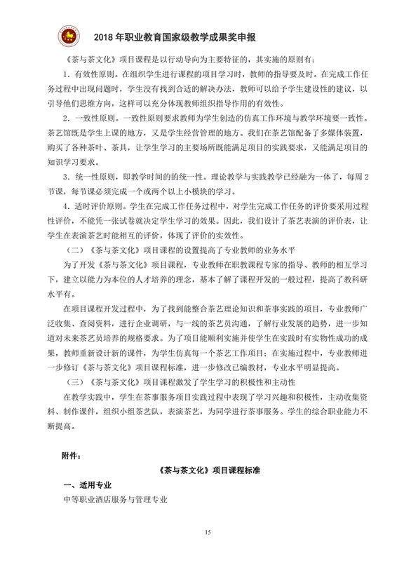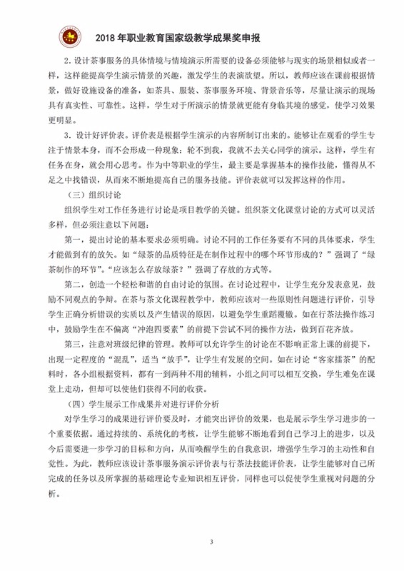 2-3-3 茶艺与茶营销专业项目课程课堂教学实验报告集