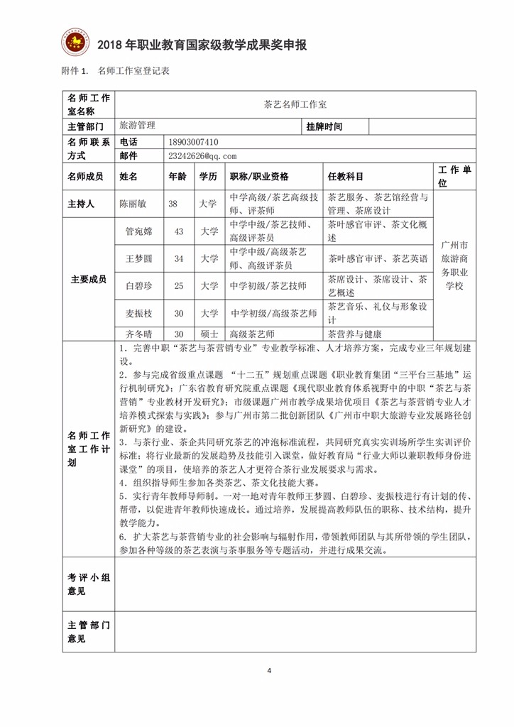 4-5-2 广州市旅游商务职业学校名师工作室建设方案