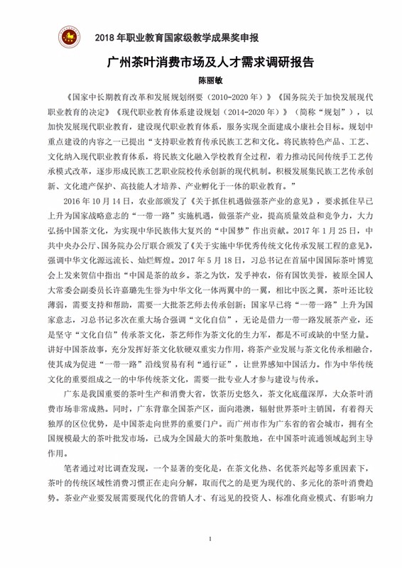 1-1-1 广州茶叶消费市场及人才需求调研报