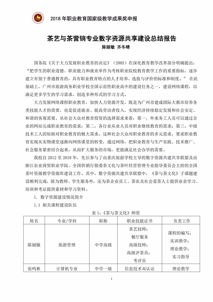 2-5-4 茶艺与茶营销数字资源共享建设报告