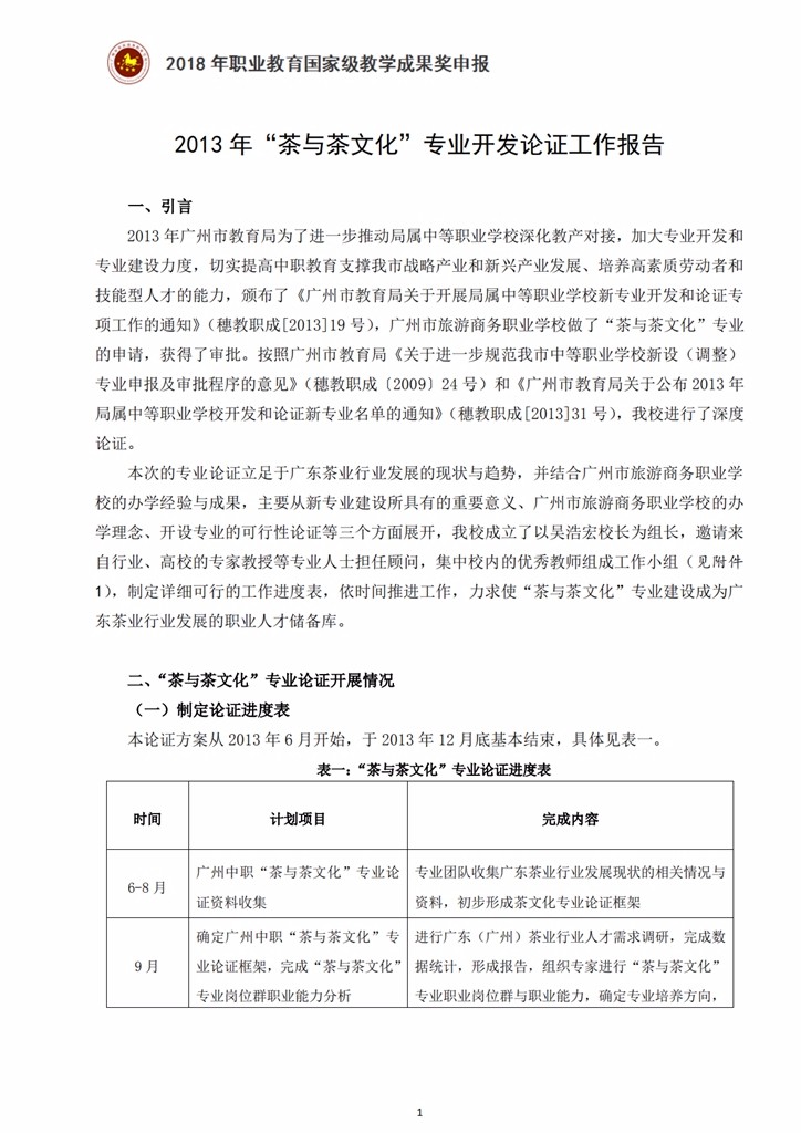 3-1-2 广州市中等职业学校新专业“茶艺与茶营销”专业论证报告