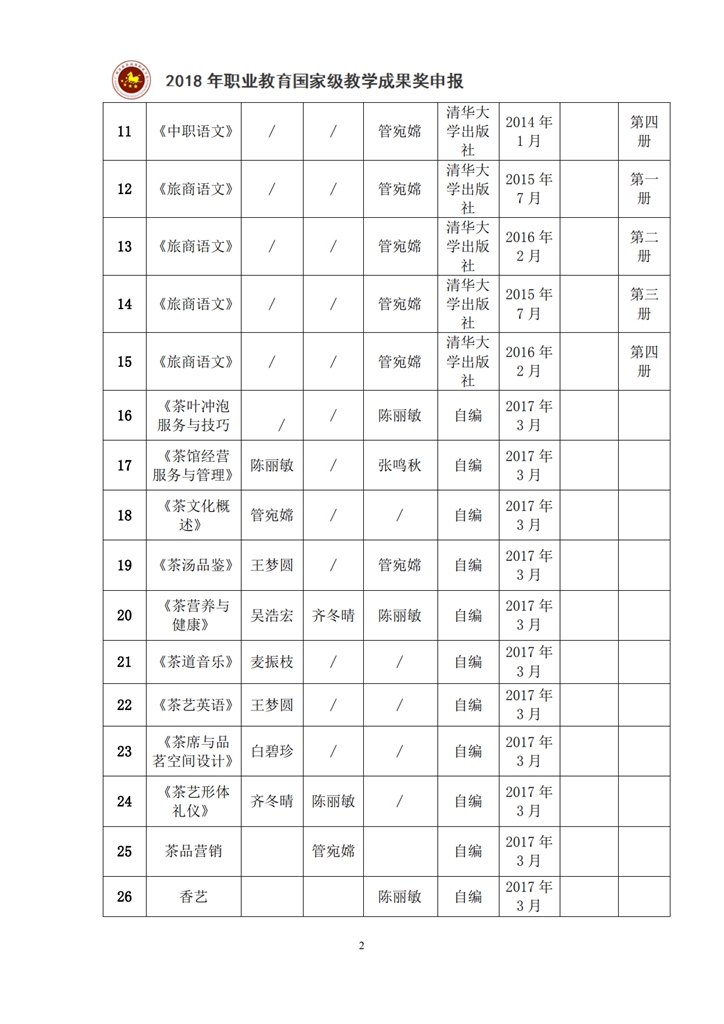 3-1-16 茶艺与茶营销专业教师自编和出版教材一览表