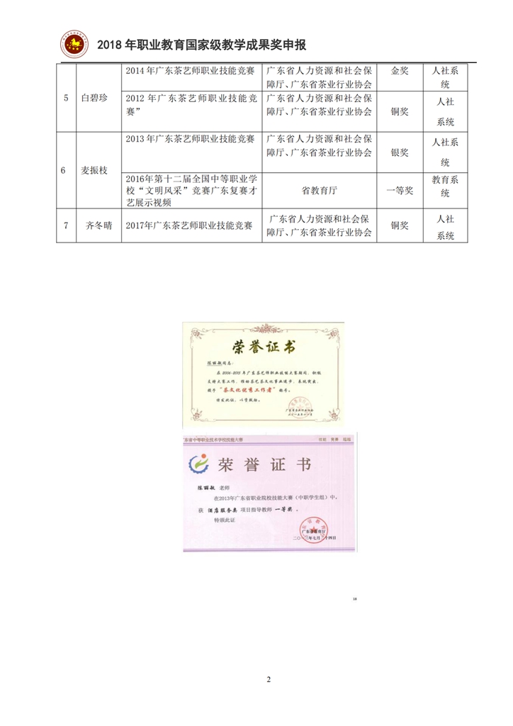 4-4-3 茶艺与茶营销专业教师参加竞赛获奖情况一览表