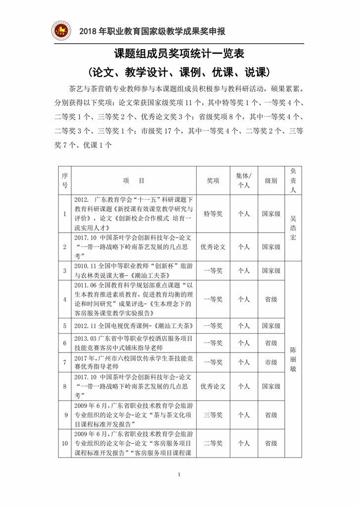 4-4-2 课题组成员奖项统计一览表(论文、教学设计、课例、优课、说课)