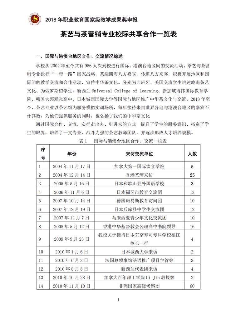 4-5-1 茶艺与茶营销专业校际共享合作一览表