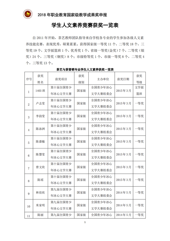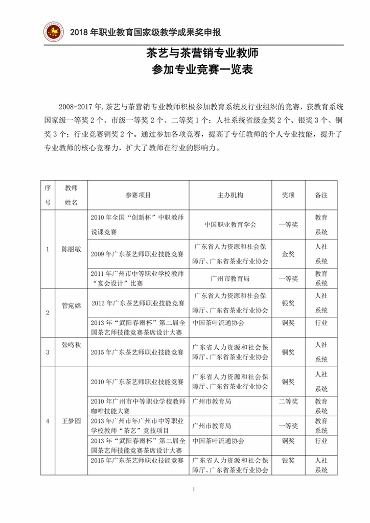 4-4-3 茶艺与茶营销专业教师参加竞赛获奖情况一览表