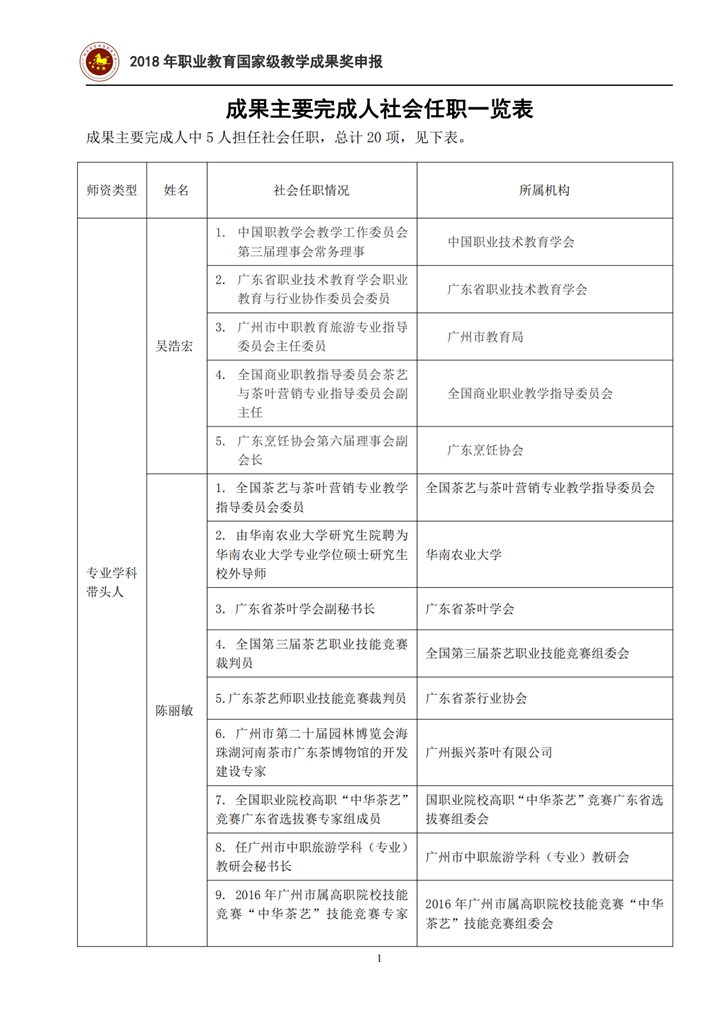 4-4-5 茶艺与茶营销专业教师社会任职一览表