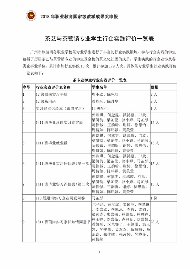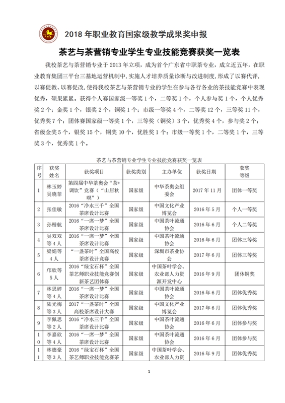 4-3-1 学生茶艺专业技能竞赛获奖一览表