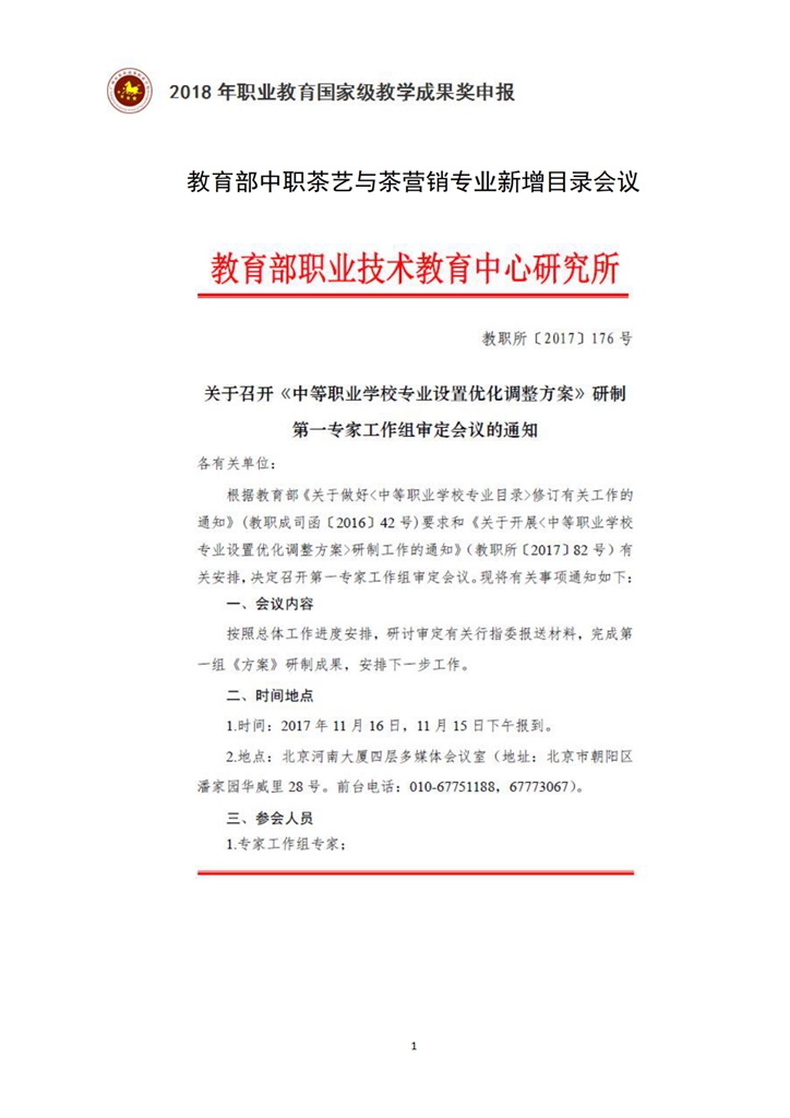 4-2-1 教育部中职茶艺与茶营销专业新增目录会议