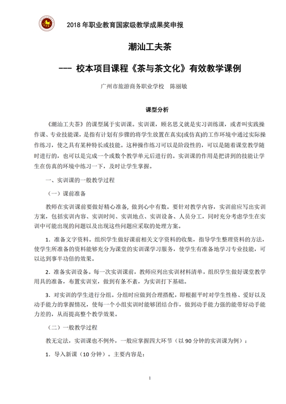 2-3-4 茶艺与茶营销专业教学设计与教学反思
