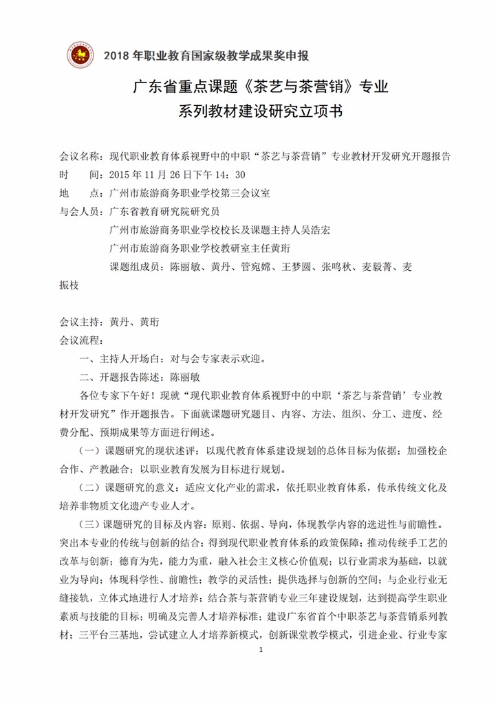 3-1-17 广东省重点课题《茶艺与茶营销》专业系列教材建设研究立项书