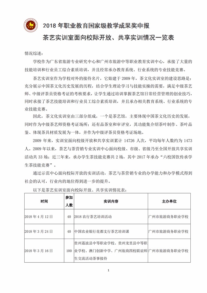 3-2-2 茶艺实训室(茶艺馆、品茗室、审评室)面向校际开放、共享实训情况一览表