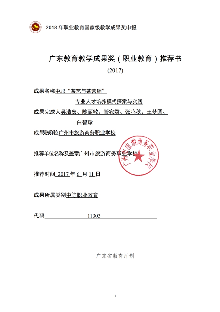 3-1-10 广东教育教学成果《中职茶艺与茶营销专业人才培养模式的探讨与实践》推荐书