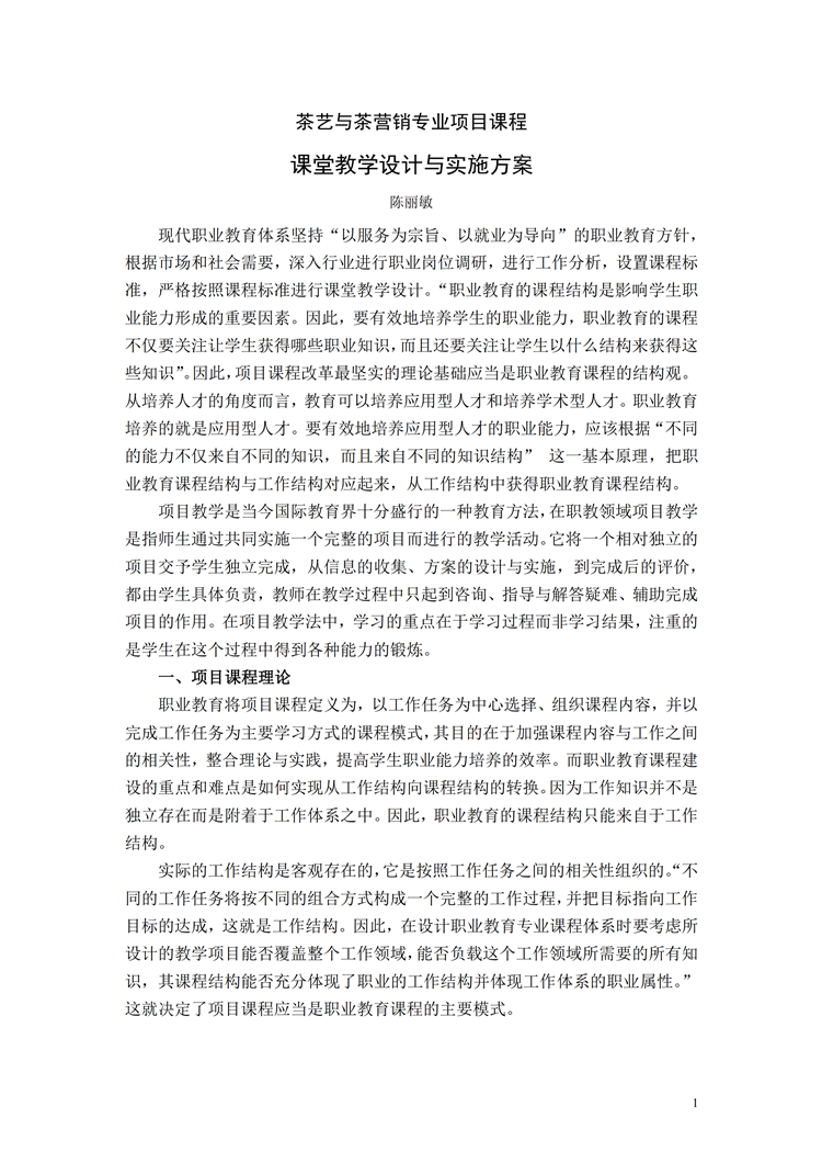 茶艺专业项目课程课堂教学设计与实施方案