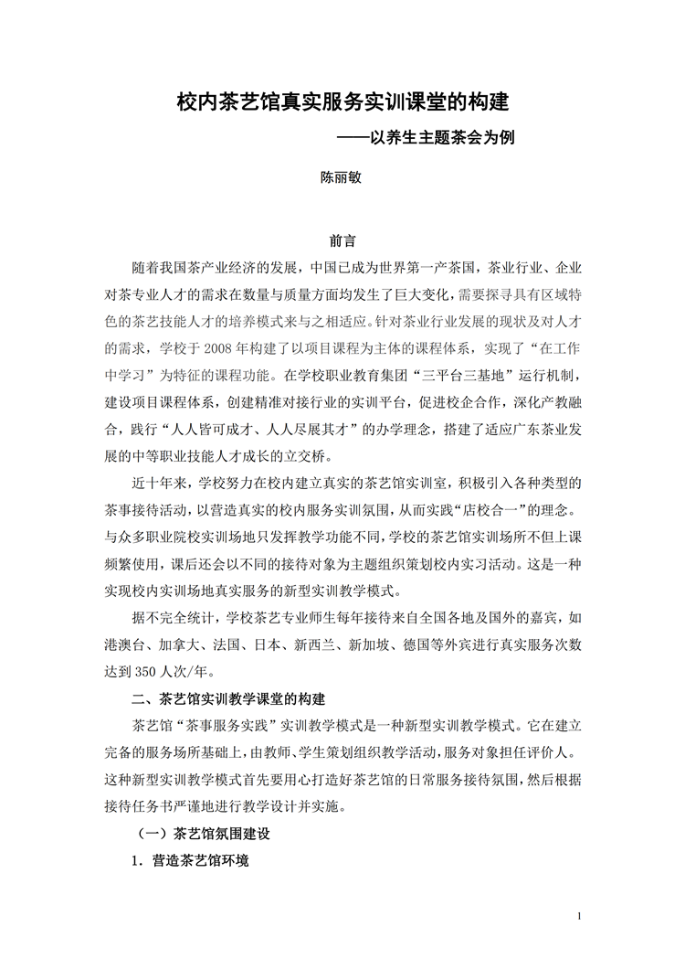 校内茶艺馆真实服务实训案例