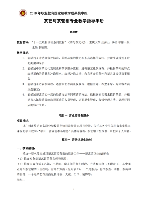 2-3-1 茶艺与茶营销专业教学指导手册