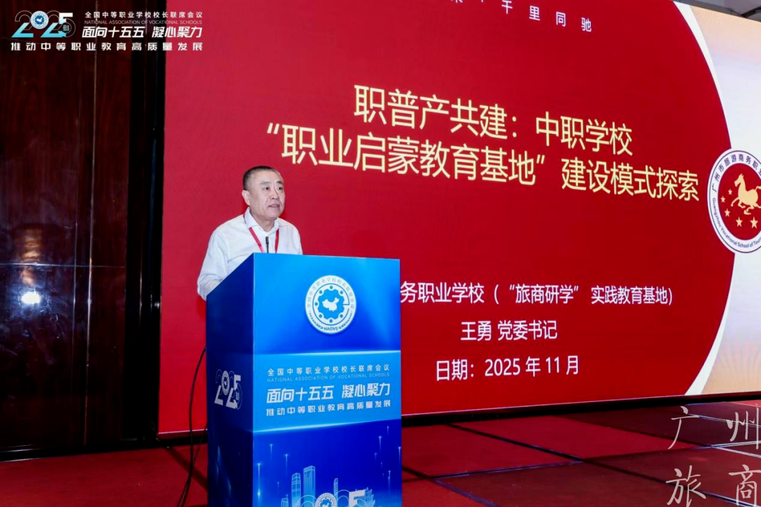 在“中等职业学校发展热点问题”论坛上,王勇书记作为主讲嘉宾,分享了广州旅商在职业启蒙教育方面的创新实践成果——《职普产共建:中职学校“职业启蒙教育基地”建设模式探索》,引发广泛关注与讨论。