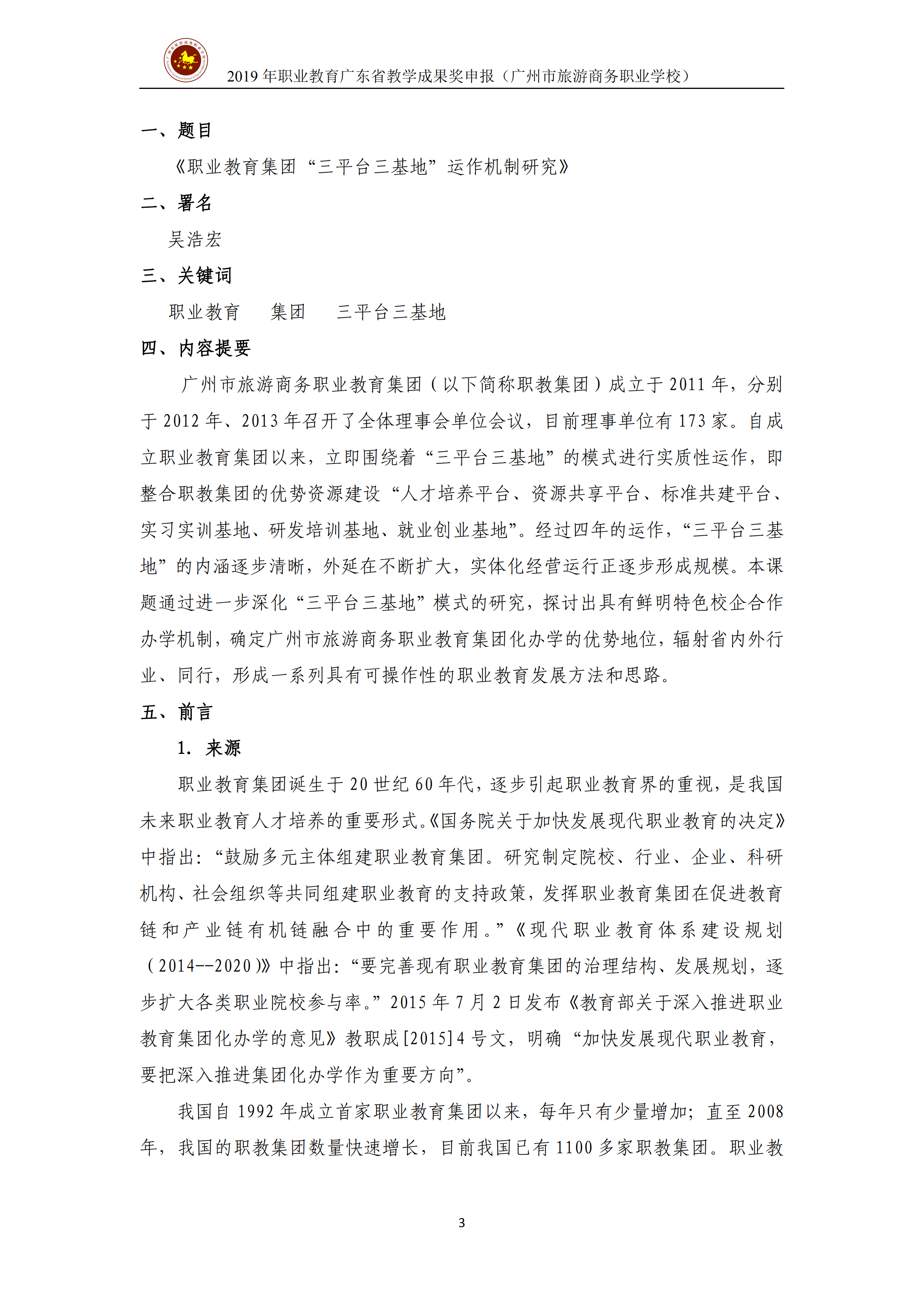 《职业教育集团“三平台三基地”运作机制研究》课题研究材料