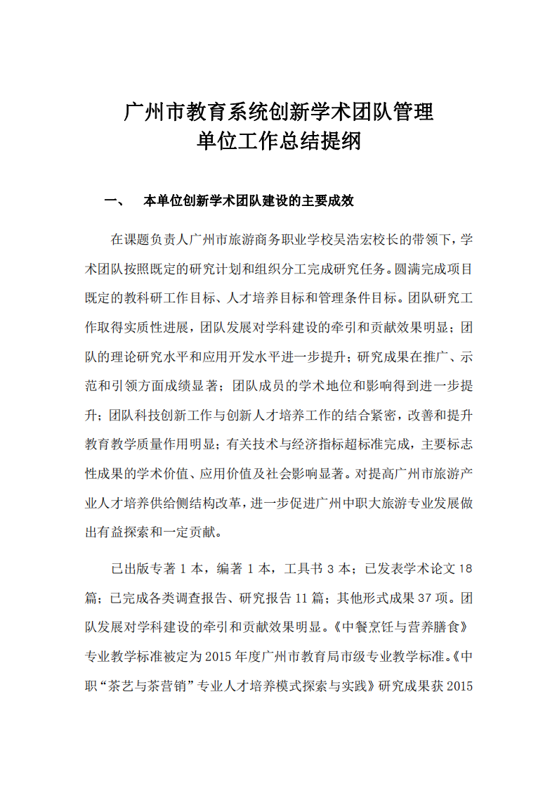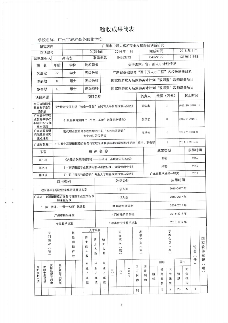 《广州市中职大旅游专业发展路径创新研究》课题研究材料